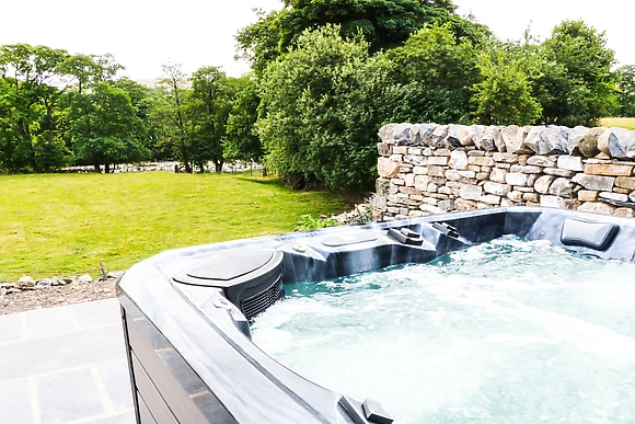 Outside, a spacious patio area and dry stone walling provide the backdrop for a luxurious hot tub, where guests can sit and enjoy the views of the donkeys, the farm cockerel, the three resident Highland cattle, sheep and cows in the adjoining meadows, whilst relaxing after a hard day’s walking on the nearby fells. A great base, ideal for keen walkers and cyclists who can make use of the secure bike storage.