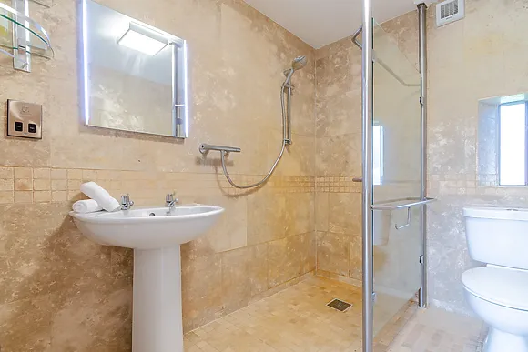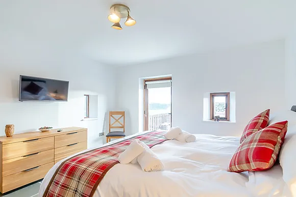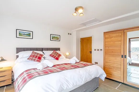 The accommodation boasts a luxurious bedroom with a super king-size bed, ensuring a comfortable and restful sleep during your stay.