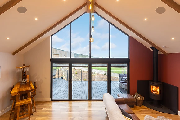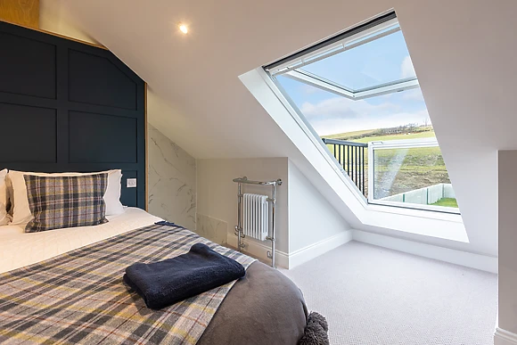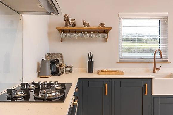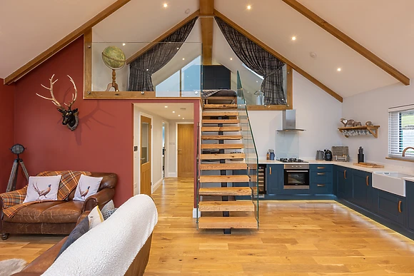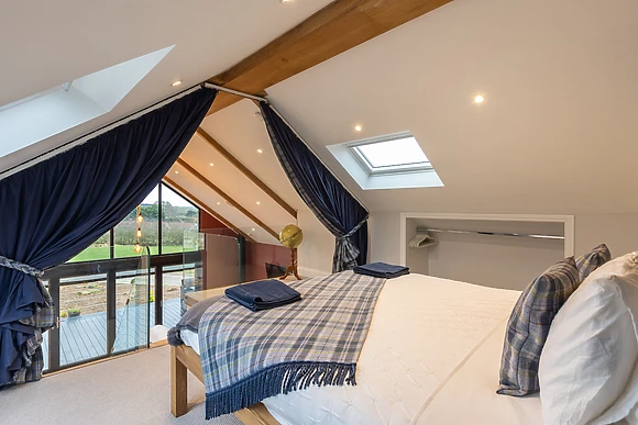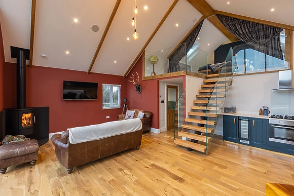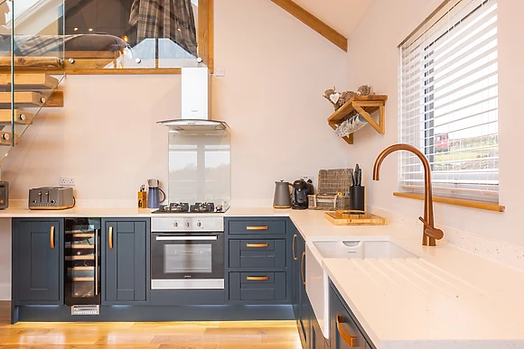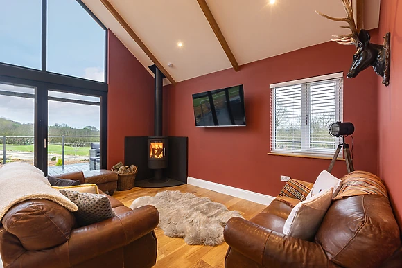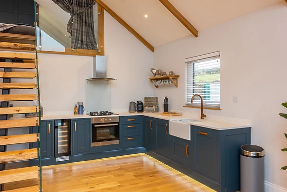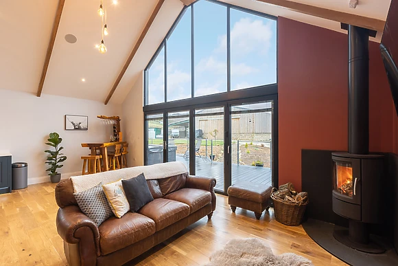 Be welcomed into the open-plan living space, which features underfloor heating, where you can cook up a storm in the fully-equipped kitchen, ready to savour the fruits of your labour at the dining table for four over a celebratory bottle of fizz. After dinner, retire to the sumptuous sofas and relax in front of the crackling woodburning stove, as your favourite show plays out on the Smart TV.