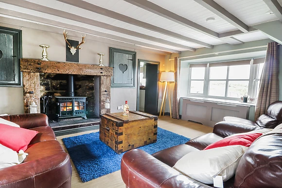 Oozing charm and character, there are exposed stone walls, beamed ceilings and crooked niches, with two warming woodburners to relax by after an active day. There is a classic, well-equipped country kitchen, with a separate dining room and a comfortable, spacious sitting room with a splendid stone feature fireplace housing the woodburning stove.