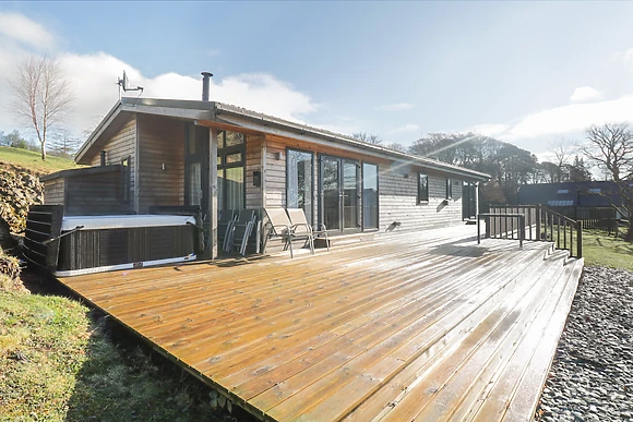 Yes, the accommodation boasts a luxurious hot tub on the decking area, perfect for unwinding and enjoying the views of the surrounding nature.