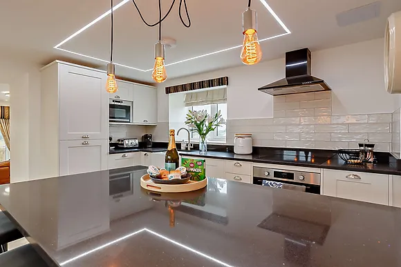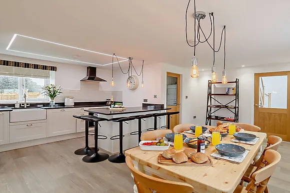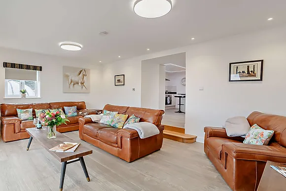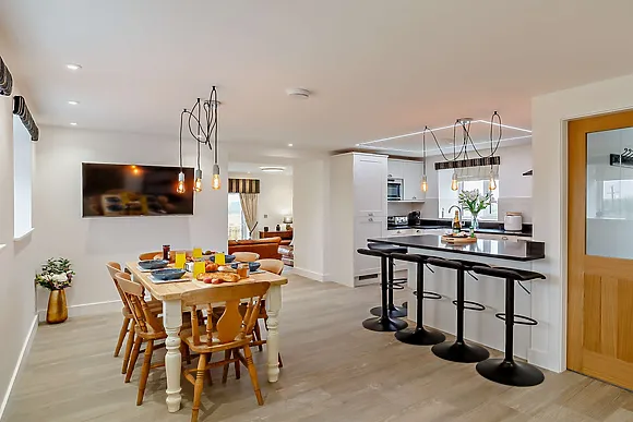 Indulge in the comfort of this type of accommodation, which boasts a contemporary open-plan kitchen and dining area, alongside a cosy lounge with bi-folding doors that invite the outside in.