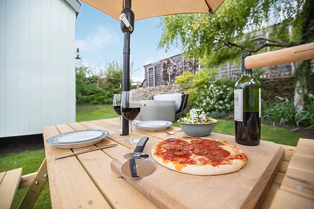 Continue through the hut past the refreshing views, and you will arrive at a modern shower room, well-appointed for getting ready in the early hours before an adventure filled day. Take a moment to appreciate the beautiful location in your downtime on sunloungers in the front lawned land, or you can end your afternoon in style, relaxing in the private hot tub on the lovely secluded rear patio which also has a barbecue and patio furniture.