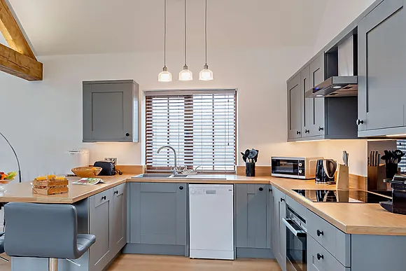 The cottage is equipped with a modern kitchen that includes an electric oven and hob, fridge, microwave, dishwasher, and a Nespresso coffee machine, providing all you need for self-catering.