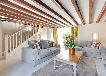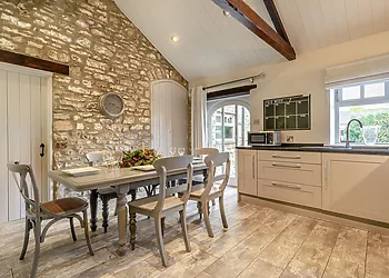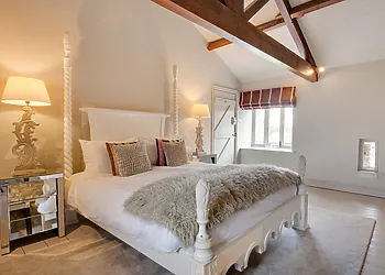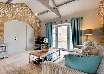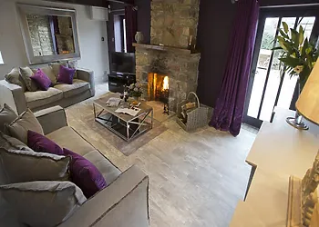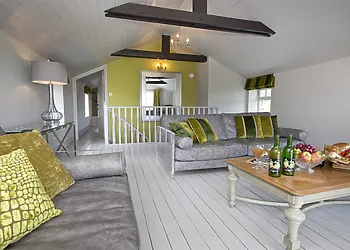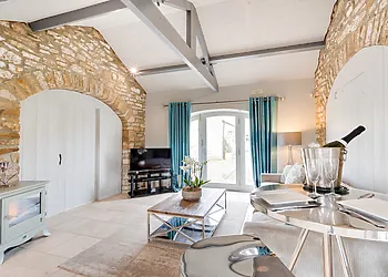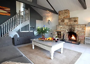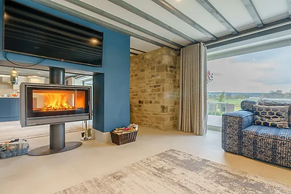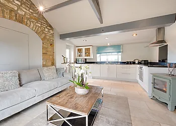 At the heart of the farmhouse is a spacious open-plan living area with a stylish kitchen, where you can cook up a storm with top-of-the-range appliances. The cosy lounge, complete with a dual aspect wood burner, is the ideal spot to unwind.