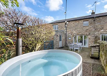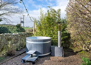 Yes, the property features a delightful outdoor hot tub, perfect for unwinding and enjoying the tranquil surroundings after a day of exploring.