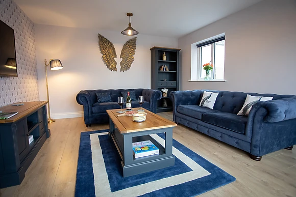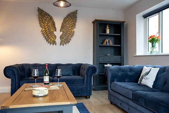 The ground floor features a sleek kitchen/diner, a cosy sitting room with a sofa bed, and a convenient wet room.