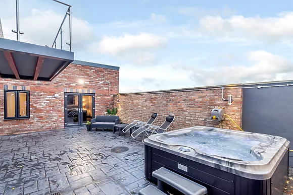 The master bedroom features a super-king bed, while two ground floor bedrooms provide easy access for those with mobility needs. Step outside to the rear patio and indulge in the hot tub, or enjoy the views from the balcony.