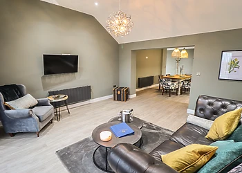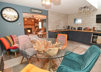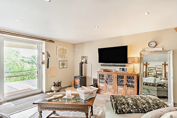 Indulge in the comfort of the open-plan living space, complete with a smart TV and a log burner that adds a cosy touch to your evenings.
