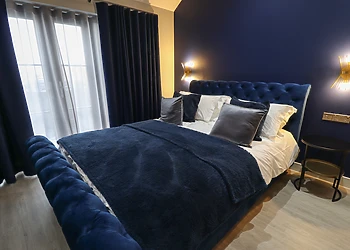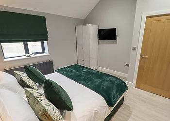The bedroom is a sanctuary of relaxation, featuring a king-size bed, luxury robes, and its own smart TV. The en-suite bathroom boasts a spacious walk-in shower, ensuring privacy and convenience.