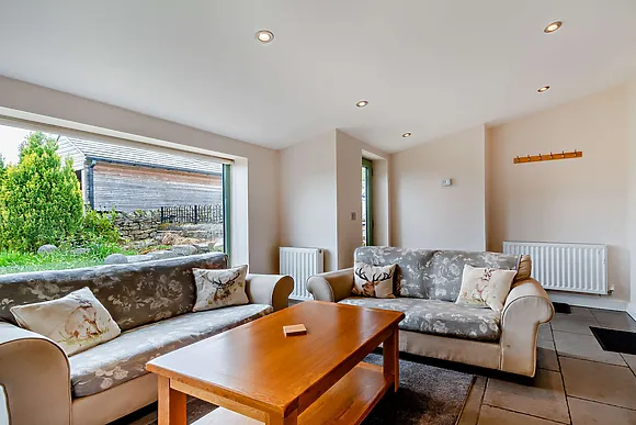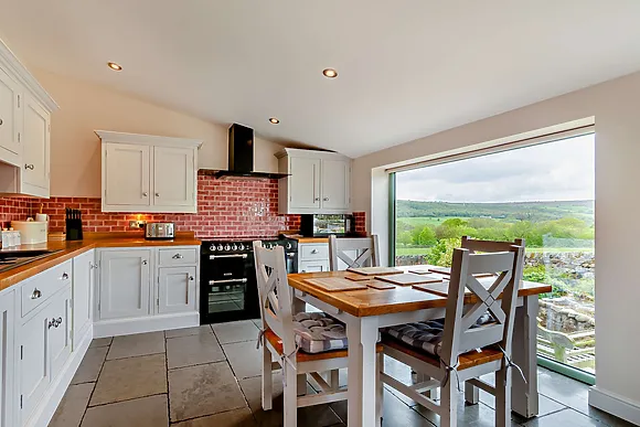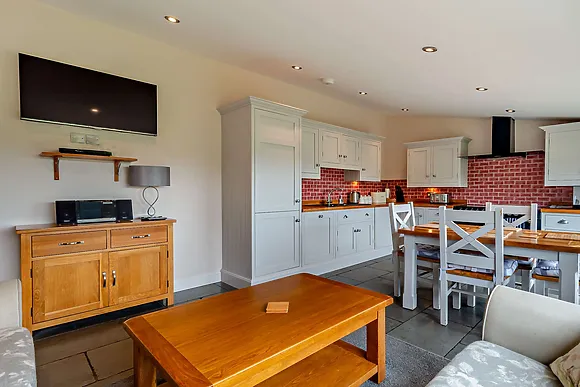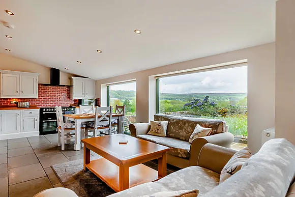 Step inside to a light-filled open-plan living space, where large picture windows frame the captivating valley views. Unwind with modern comforts, including a Smart TV, DVD player, and hi-fi/iPod dock.