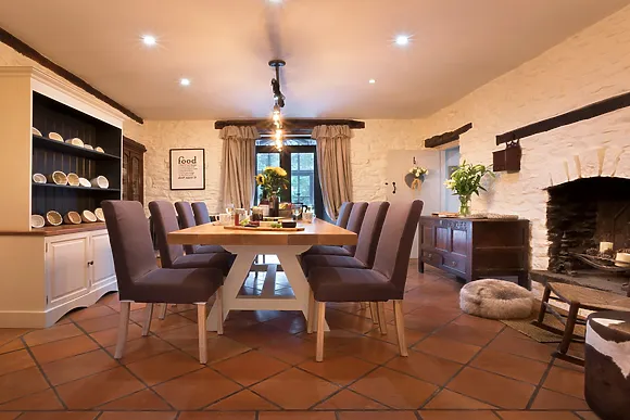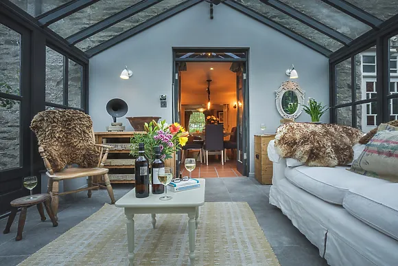Inside, you'll find a well-equipped kitchen, two cosy lounges with a wood burner and open fire, and a large dining room that opens to a conservatory. The ground floor bedroom with level access shower room ensures comfort for all guests.