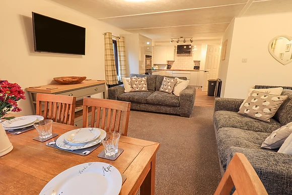 Approach your new abode after unloading in the off-road parking space, admiring your surroundings from the comfort of your own private decking as you go; cross the threshold into the kitchen, where you can find all the expected appliances guaranteed to make your self-catered stay a success. Nearby, discover the sitting area where you can unwind in the warmth of the living room and relish a movie or two with use of the Smart TV as the designated chef cooks up a storm; delight in mealtimes at the dining table or venture outside to enjoy a feast alfresco with the lovely surroundings in your backdrop.