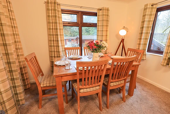 Perched upon White Cross Bay Holiday Park in the tranquil location of Troutbeck Bridge in Cumbria, is this charming single-storey holiday lodge, Woodland Retreat. As the name suggests this property is enveloped in the beauty of surrounding woodland and enjoys a private wrap-around decking with hot tub, an open-plan living space and close proximity to amenities and attractions, welcoming six guests and their four-legged companion to enjoy an idyllic retreat in Cumbria.