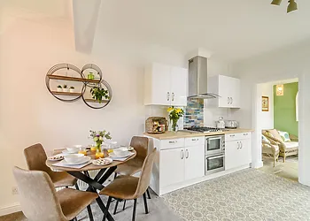 The cottage boasts a charming farmhouse kitchen for home-cooked meals and a restful sitting room complete with a woodburning stove, ensuring comfort and warmth on cooler evenings.